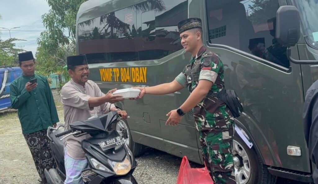 Sebelum kegiatan, prajurit menyiapkan paket makanan berupa nasi kotak, susu kotak, dan biskuit. Tak hanya membagikan bantuan, personel Yonif TP 804/DBAY juga ikut mengikuti ibadah sesuai keyakinan masing-masing, sebagai bentuk penghormatan terhadap nilai toleransi dan keberagaman umat beragama.